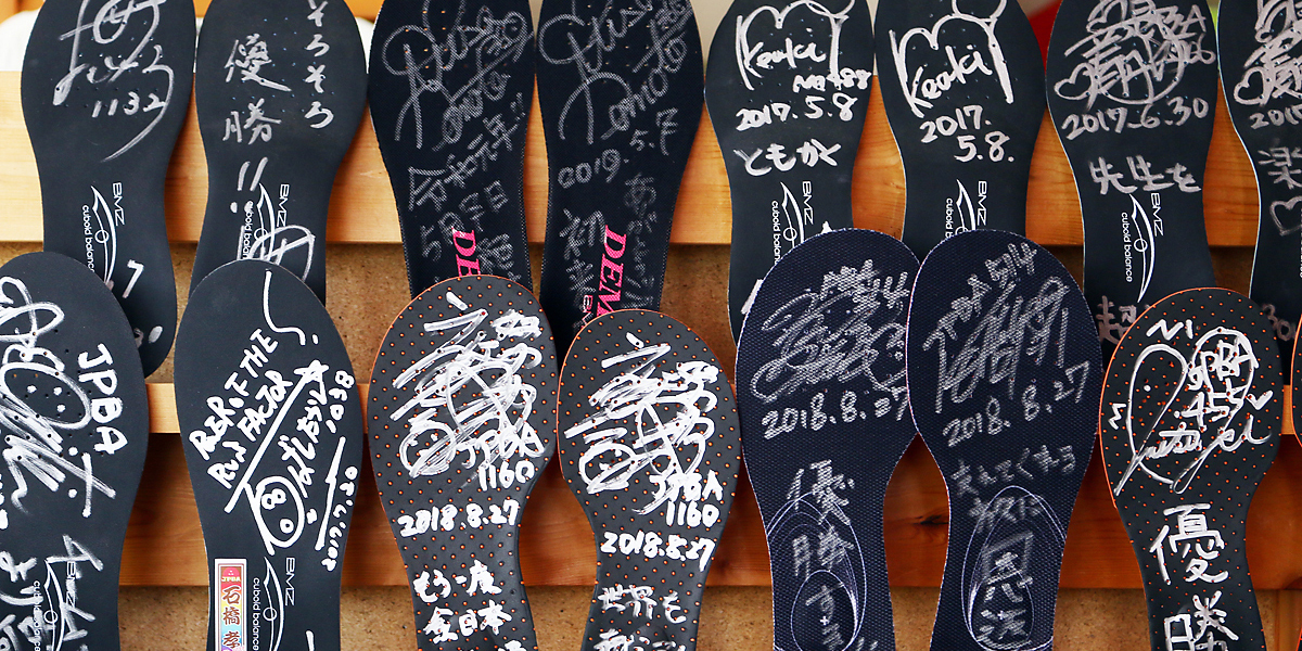 そんな、ただでさえバランスを取りにくい体制で、さらには膝に負担もかかるボウリングのモーションを、骨格構造や筋肉の働きなどをみるバイオメカニクス的考察から、バランスを取りやすく、さらには膝への負担も少ないものに調整していく、この加工がSYROのボウリングシューズチューンナップです。