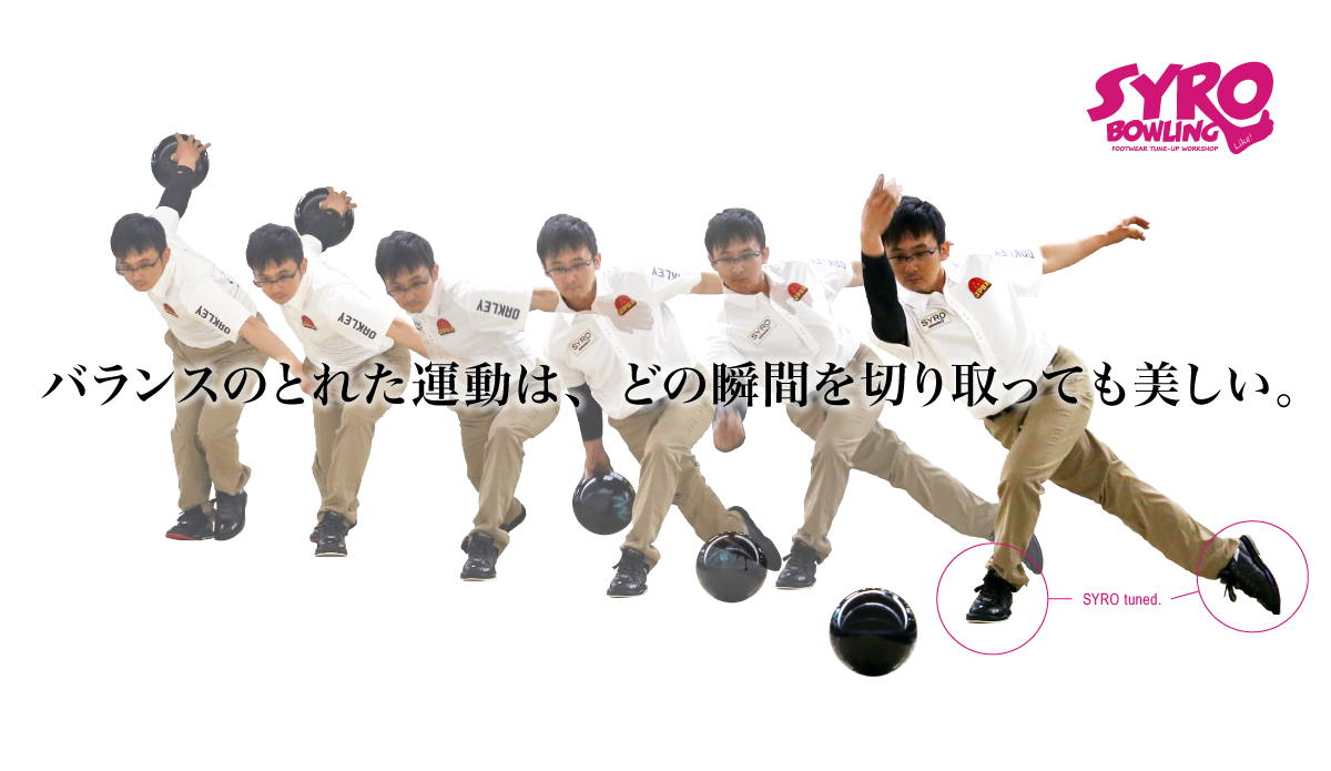 ボウルを持つ手、 手の動きを支える腕、 腕を支える肩・体幹、 それら上半身と下半身の動きをつなぐ股関節周り及び臀部、 上半身が乗っかった状態で片足で膝を曲げ伸ばしする脚、 といった具合にボウルを持って投球するまでには様々な「支え」があり、最終的にすべての支えを担っている土台が「足」ということになります。つまり、ボウルを持つ手の支えも元をたどれば足なんだと考えると、靴を含めた「足元」の調整がとても大事であることがよく理解できると思います。